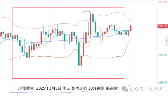 3月6日:上来去日周三(3月5日):外洋黄金偏触底回升式轰动微幅收涨,未能重回中轨下方,这令多头仍占据上风,使得后市行情仍有再度刷新历史高点的预期。 具体走势上,金价自亚市开于2917.36好意思元/盎司,亚欧盘合座处于2902-2923好意思元区间内轰动波动,到好意思盘开盘后,振幅加大,在先行走低录得日内低点2894.19好意思元,之后又飞快触底回升,链接反弹录得日内高点2929.53好意思元,终末又遇阻回落,但最终握稳于2915好意思元上方窄幅盘整,至盘尾收于2918.96好意思元,日振幅